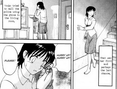 เธอโดนบังคับ ให้ถอดเสื้อ(โดนซ้อมตลอด) แล้วจากนั้นชายทั้ง 4 คนก็รุมข่มขืนเธอ(การ์ตูนเรื่องนี้จะมีเป็นบท ซึ่งหนึ่งบทหมายถึงผ่านไปวันๆ)